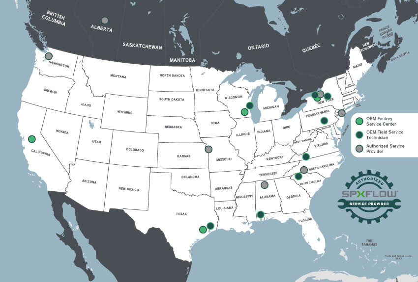 Outside the coverage area for our Factory Service Centers? We still have you covered with our Authorized Service Providers. Fully trained and certified, our ASPs provide local inspection and repair services for all mixers. Having repairs performed by an ASP ensures the use of OEM parts that meet SPX FLOW’s quality standards and increase uptime.